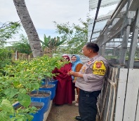 Anggota binmas polres Cilegon melaksanakan tugas panen jagung