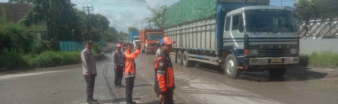 Giat Pengaturan Lalin Di Jalan Raya PT SMI Bojonegara Bripka Leo & Dishub Laksanakan Strong Poin Sore Hari
