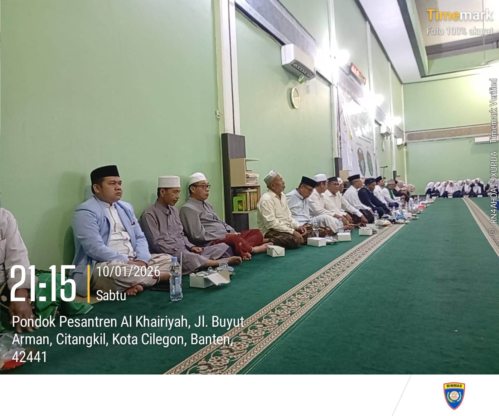 Cilegon – Dalam Upaya mewujudkan situasi kamtibmas yang aman dan kondusif dalam Pelaksanaan Peringatan Hari Besar Islam (PHBI) Isra Mi'raj, Kapolsek Ciwandan Polres Cilegon Polda Banten KOMPOL Andi Suherman, S.H,M.M Beserta Bhabinkamtibmas Polsek Ciwandan Polres Cilegon Polda Banten terus mempererat tali silaturahmi dan menjalin komunikasi aktif dengan warga masyarakat Binaannya, Minggu (11/01/2026).