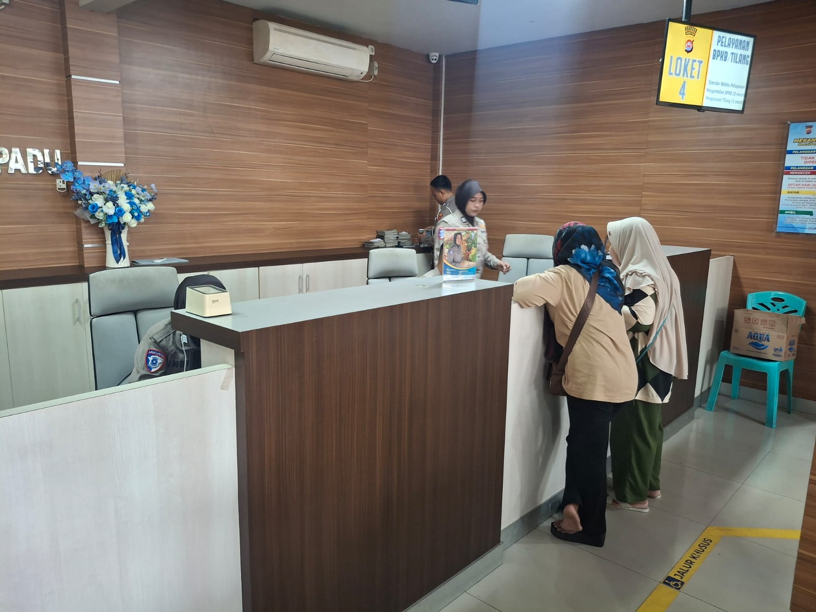 Setelah mengisi formulir, laporan akan diterima oleh petugas SPKT. Petugas akan