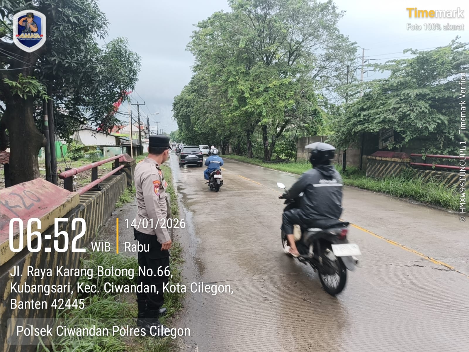 Cilegon - Dalam rangka antisipasi bencana alam personil Polsek ciwandan mengecek debit air di beberapa titik aliran sungai salah satunya yaitu kalimuk RT 005 RW 006 Kelurahan samang Raya Kecamatan citangkil Kota Cilegon, Rabu (14/01/2026).