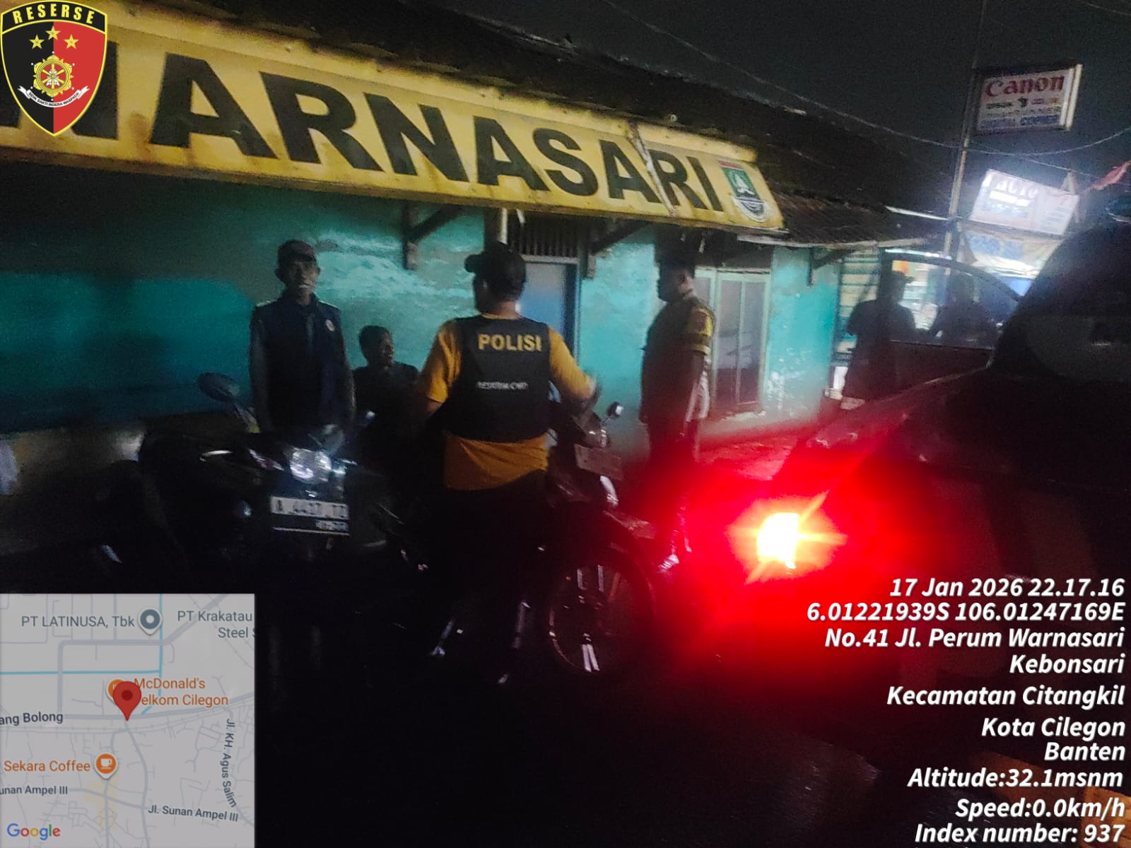 Cilegon - Polsek Ciwandan Polres Cilegon Polda Banten kembali menunjukkan komitmennya dalam menciptakan keamanan dan ketertiban masyarakat (kamtibmas) yang kondusif melalui Kegiatan Patroli Malam, Kegiatan ini dilakukan secara rutin dengan berkeliling di daerah hukum Polsek Ciwandan, Minggu (18/01/2026).