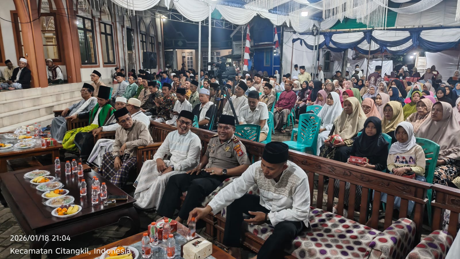 Kegiatan ini berlangsung dalam acara Peringatan Isro Miraj, dihadiri Camat Citangkil, Plt Lurah Samangraya, dan tokoh masyarakat. IPTU Ali Asron memberikan himbauan terkait harkamtibmas, ITE, pencegahan narkoba, dan layanan 110. Situasi aman dan tertib.