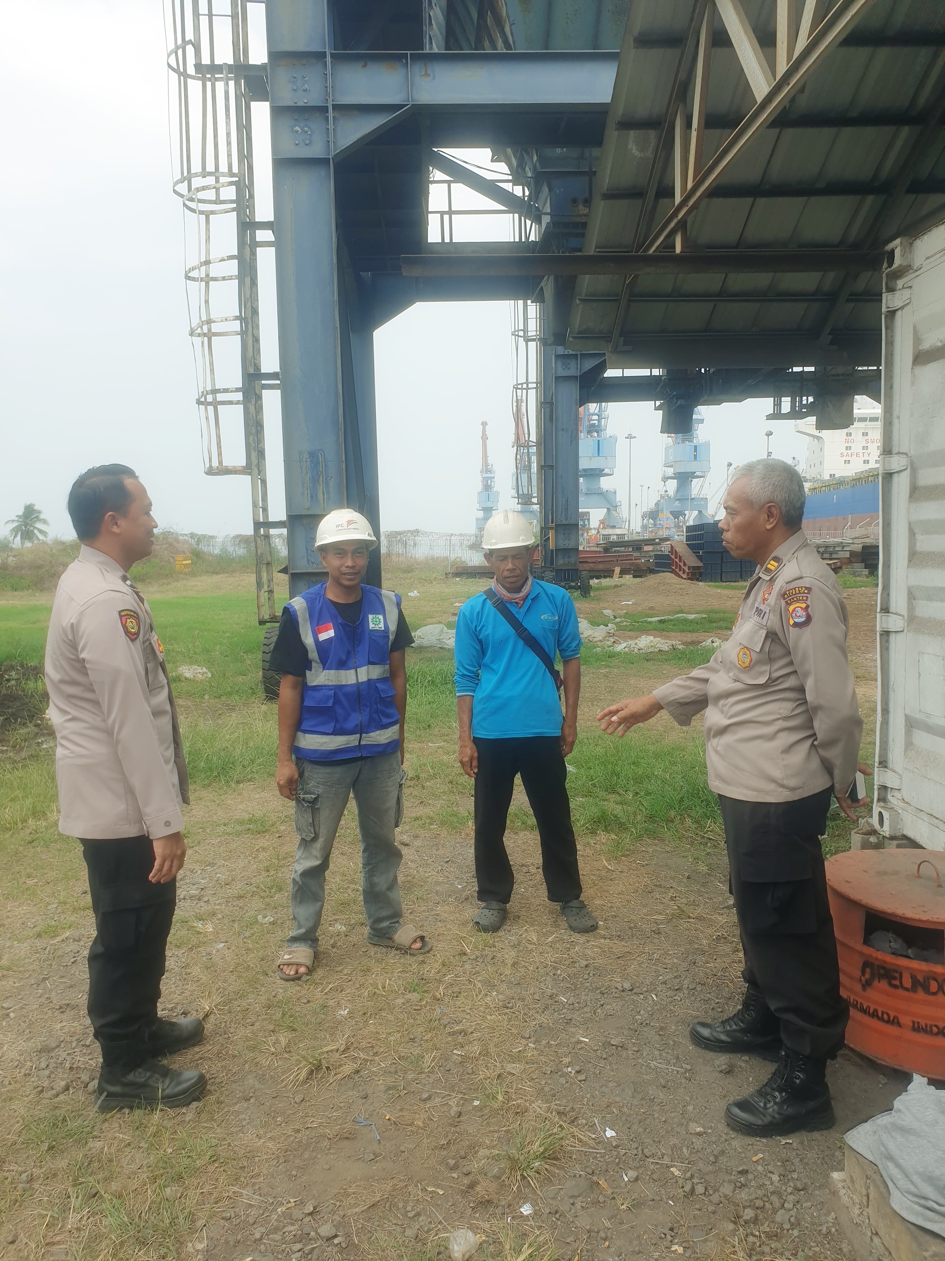 Personil Bhabinkamtibmas Polsek Kawasan Pelabuhan Banten Berbincang dengan Buruh