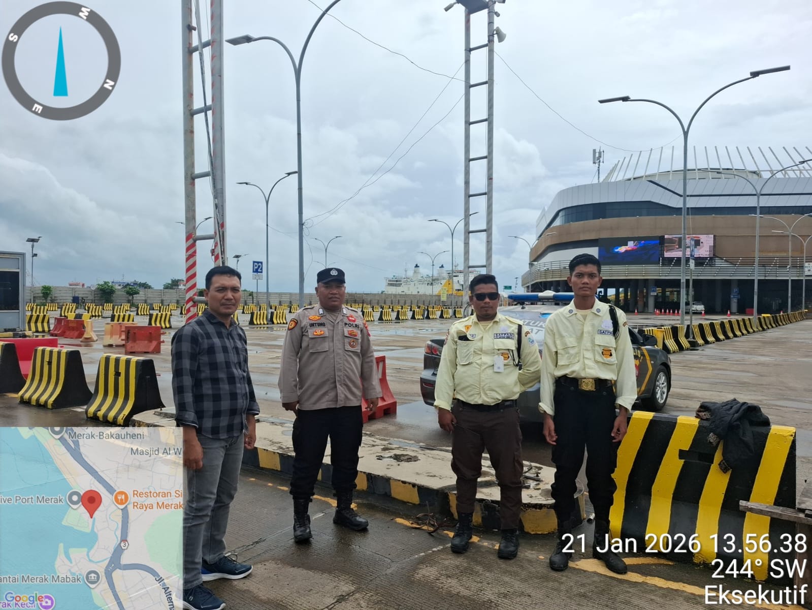 Cilegon - Personel Polsek Kskp Merak Polres Cilegon Polda Banten melaksanakan sambang dan patroli kawasan pelabuhan merak dalam rangka menjaga Harkamtibmas di Kawasan Pelabuhan Merak, Kamis (22/01/2026).