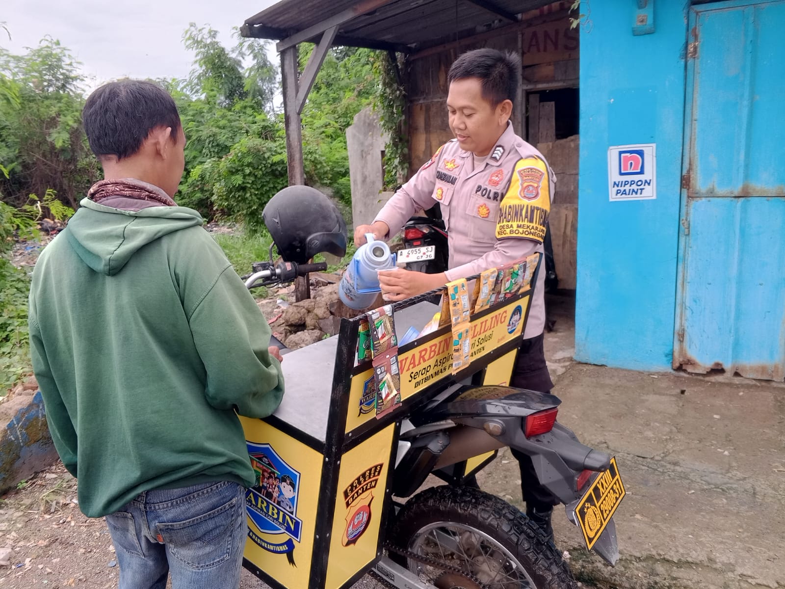 Kapolres Cilegon Polda Banten AKBP Dr Martua Raja Taripar Laut Silitonga melalui Kapolsek Bojonegara Polres Cilegon Polda Banten IPTU Muhammad Lazim Satria Wibowo Mengatakan Warung Bhabinkamtibmas adalah tempat untuk warga menyampaikan saran dan masukan kepada polisi Bhabinkamtibmas di desa. Suasana yang dibuat adalah santai dan bersahaja sebagaimana kumpul kumpul di warung"Fungsi dari kegiatan ini adalah untuk menjaring informasi yang berkembang di masyarakat dan menjadi garda terdepan dalam penyelesaian masalah yang ada di lingkungan warga terpencil agar tidak berkembang menjadi masalah yang lebih besar dan dapat mengganggu harkamtibmas.