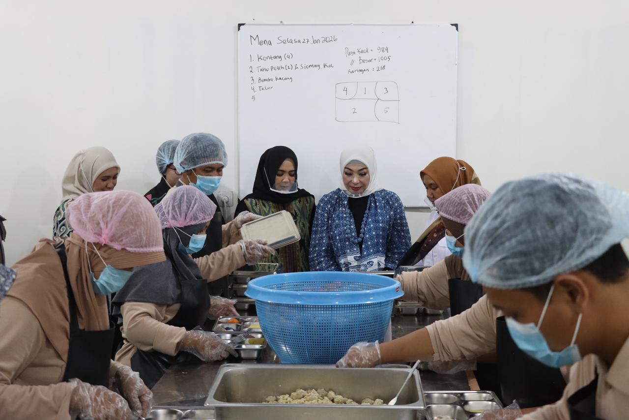 Dalam kunjungannya, Ny. Ulfa Hengki melakukan pengecekan menyeluruh ke sejumlah fasilitas dapur SPPG, mulai dari ruang loker, ruang penyimpanan basah dan kering, ruang persiapan, ruang dapur, ruang pendingin makanan, ruang pemorsian, ruang cuci, ruang alat, hingga ruang kepala SPPG, ruang akunting ahli gizi, dan ruang meeting. Peninjauan ini dilakukan untuk memastikan seluruh ruangan terjaga kebersihannya, aman, serta mendukung kualitas pelayanan yang optimal.