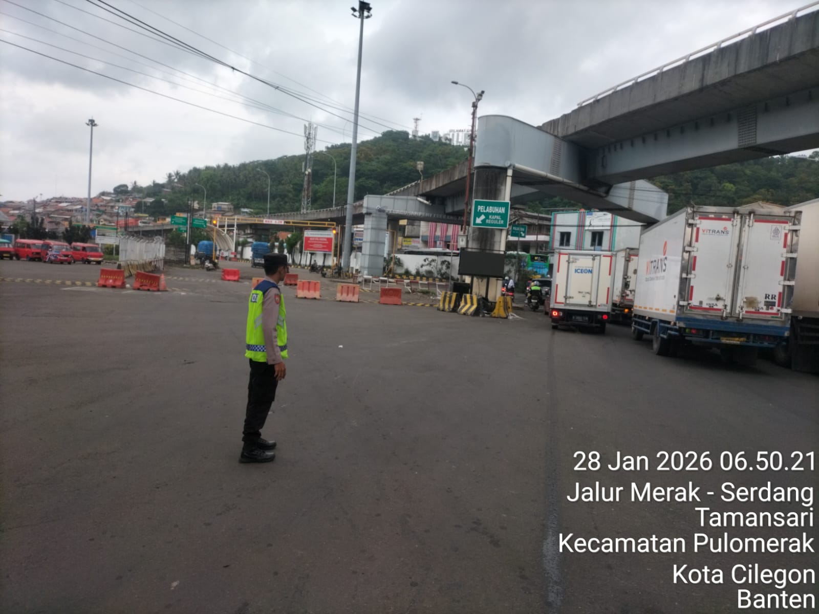 Cilegon - Dalam rangka peningkatan pelayanan prima kepada masyarakat, Kskp Merak Polres Cilegon Polda Banten melaksanakan pengaturan antrian R4 yang akan masuk ke Kapal Ferry di Pelabuhan Merak, Rabu (28/01/2026).