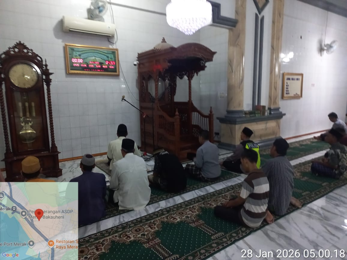Cilegon – Personil Kskp Merak Polres Cilegon Polda Banten menggelar kegiatan Pembinaan Rohani dengan shalat subuh keliling di Masjid Yang ada Di Daerah hukum Polsek Kp Merak Polres Cilegon Polda Banten, Rabu (28/01/2026).