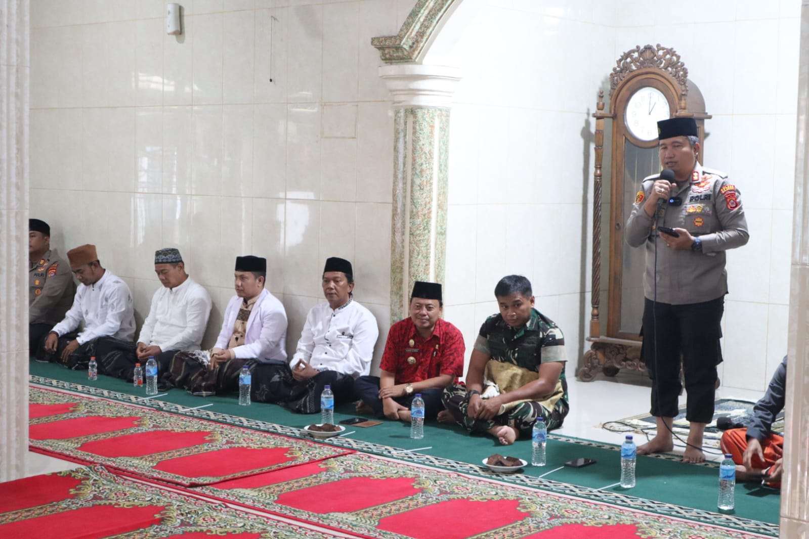 Dalam sambutannya, Camat Cilegon menyampaikan apresiasi atas kehadiran Kapolres Cilegon dan Dandim 0623/Cilegon di tengah masyarakat. Ia mengajak jamaah untuk memanfaatkan momentum tersebut sebagai sarana silaturahmi dan ruang konsultasi, khususnya bagi warga yang memiliki persoalan hukum maupun permasalahan sosial kemasyarakatan.