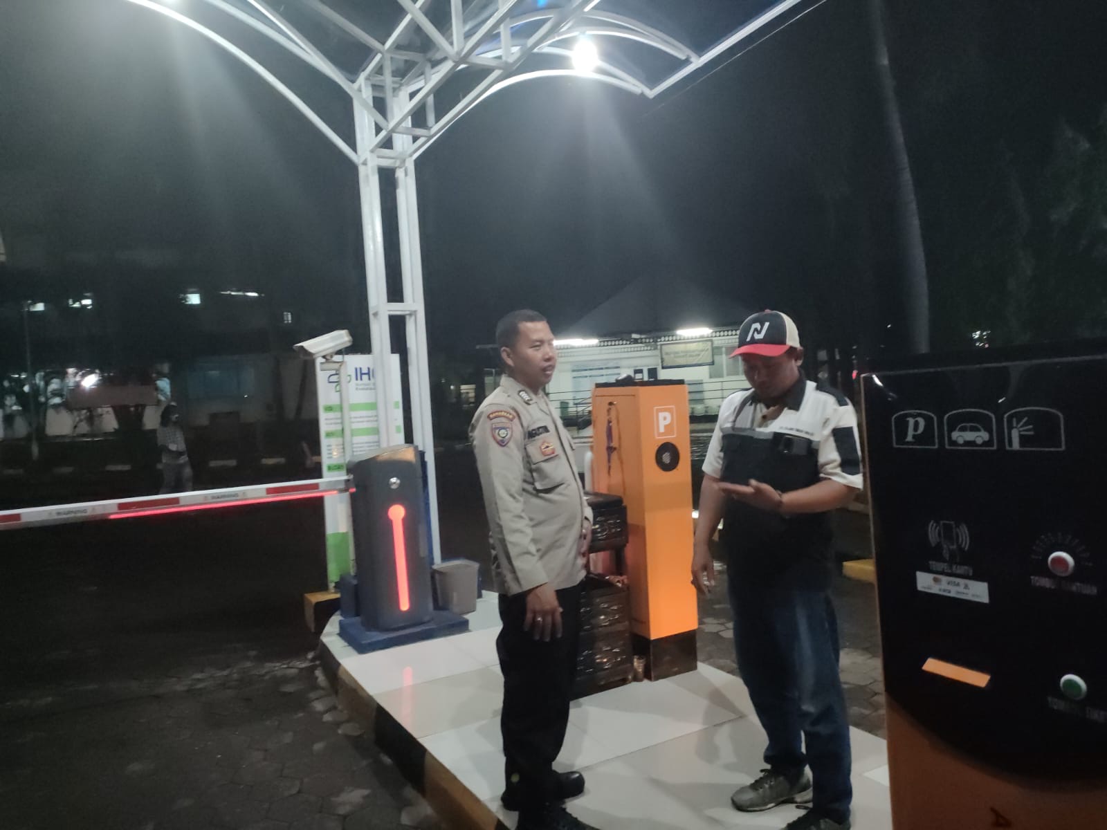Bhabinkamtibmas Kelurahan Kotabumi, Kecamatan Purwakarta, Kota Cilegon, Bripka Agustoni, melaksanakan patroli dialogis dengan menyapa petugas jaga parkir Rumah Sakit Khusus Mata (RSKM) IHC