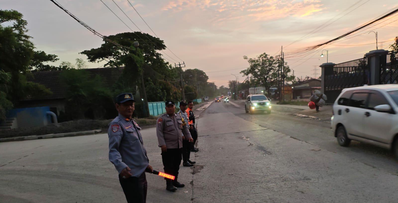 Demi Kelancaran dan Kenyamanan Pengguna Jalan, Ipda Gana Kanit Samapta dan Bripka Ghery Bhabinkamtibmas Laksanakan Gatur Lalu lintas Pagi Hari Di Simpang Jalan Raya Wadas Bojonegara