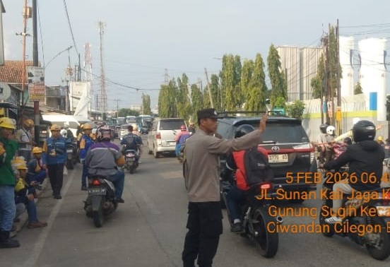 Cilegon - Tingginya mobilitas masyarakat pada jam-jam sibuk, tingkat kerawanan baik itu kemacetan ataupun kecelakaan pasti ada potensi, sehingga untuk mengantisipasi hal tersebut Personil Polsek Ciwandan Polres Cilegon Polda Banten Bhabinkamtibmas melaksanakan Strong Point pada sejumlah lokasi, Kamis (05/02/2026).