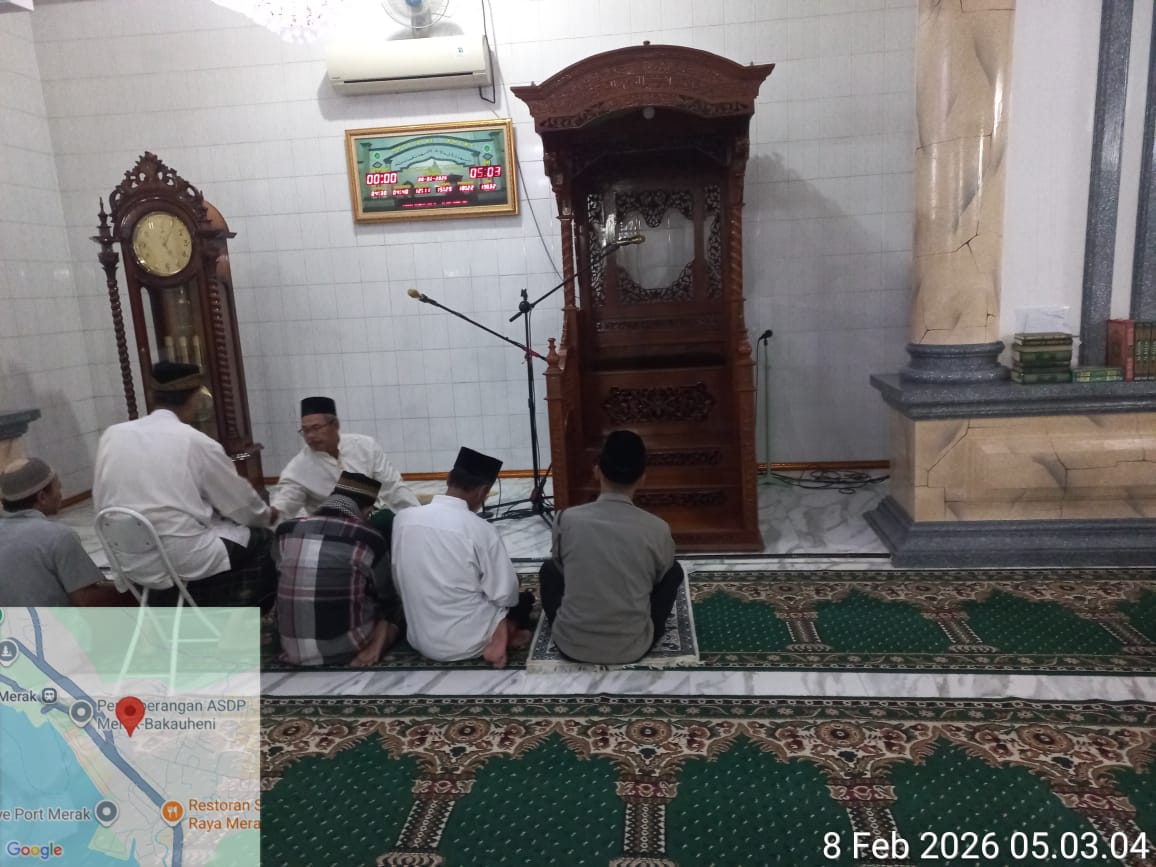 Cilegon – Personil Kskp Merak Polres Cilegon Polda Banten menggelar kegiatan Pembinaan Rohani dengan shalat subuh keliling di Masjid Yang ada Di Daerah hukum Polsek Kp Merak Polres Cilegon Polda Banten, Minggu (08/02/2026).