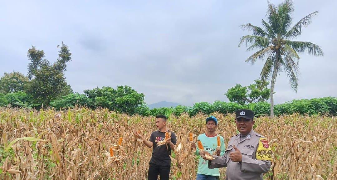 Personil Polsek Anyar Lakukan Pendampingan Panen Jagung Kelompok Tani