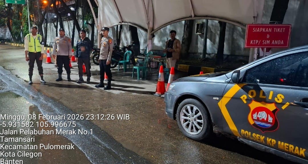 Cilegon - Personil Polsek Kskp Merak Polres Cilegon melaksanakan patroli di kawasan pelabuhan merak memberikan rasa aman dan damai, Senin (09/02/2026)