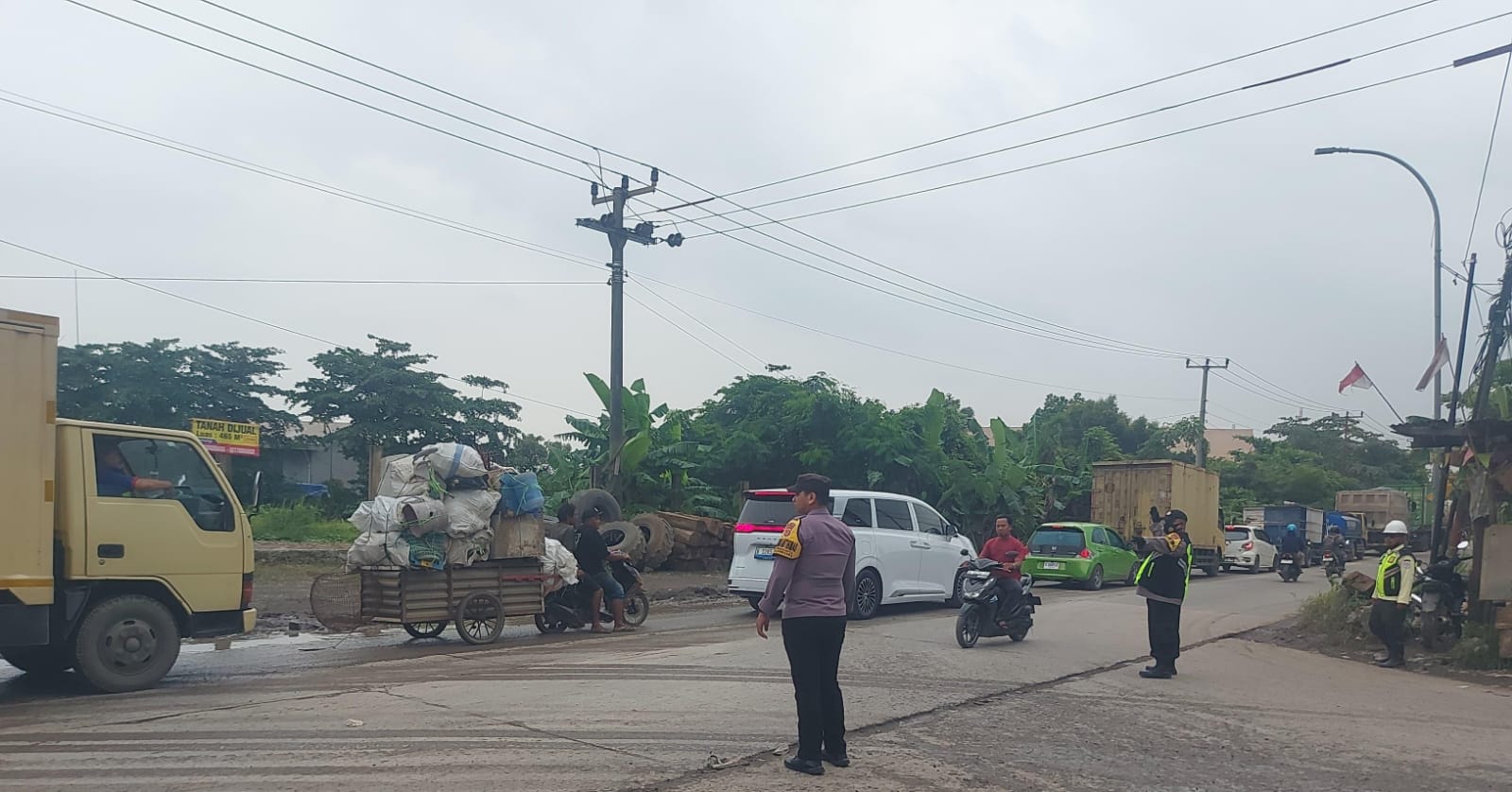 Briptu Alang Bhabinkamtibmas Laksanakan Gatur Lalin Pagi hari Di Simpang Jalan PT BAM Bojonegara