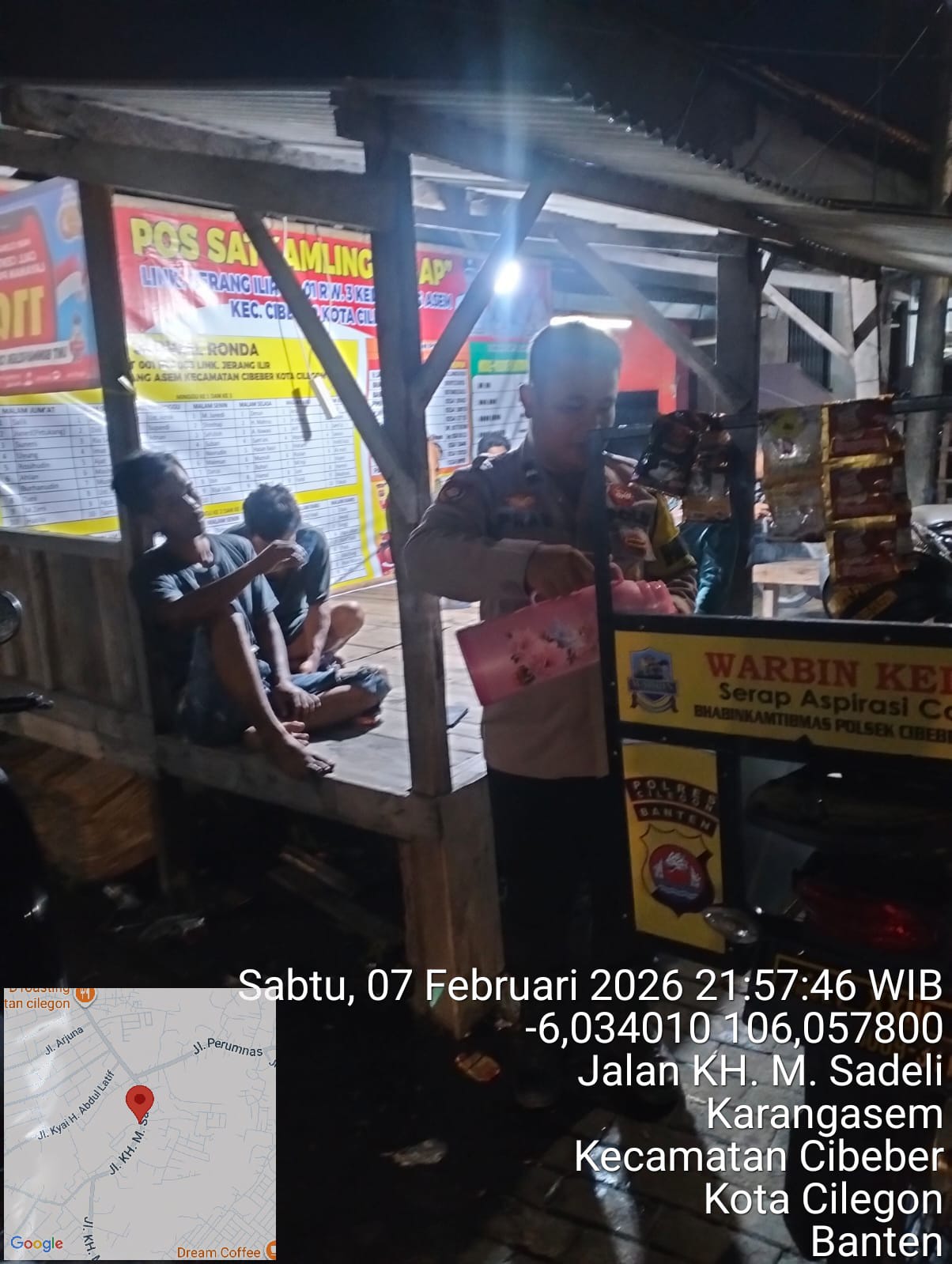 Anggota Bhabinkamtibmas Polres Cilegon bersama Kanit Bintibsos melakukan kegiatan penyerahan sarana kontak untuk: