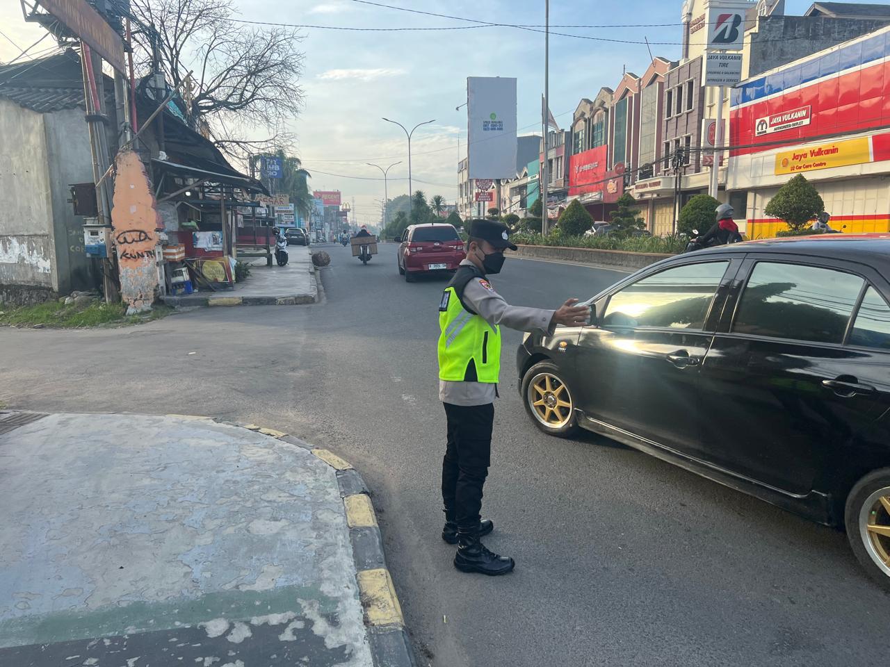 Cilegon,Polres Cilegon Polda Banten Pada Kamis 12/02/2026 Pukul 06.30 Wib, Personil Siwas Polres Cilegon, Brigpol Hadi sudrajat melaksanakan kegiatan pengaturan arus lalu lintas di Jalur Protokol jalan utama Kota Cilegon tepat nya di jalur protokol Kota Cilegon.