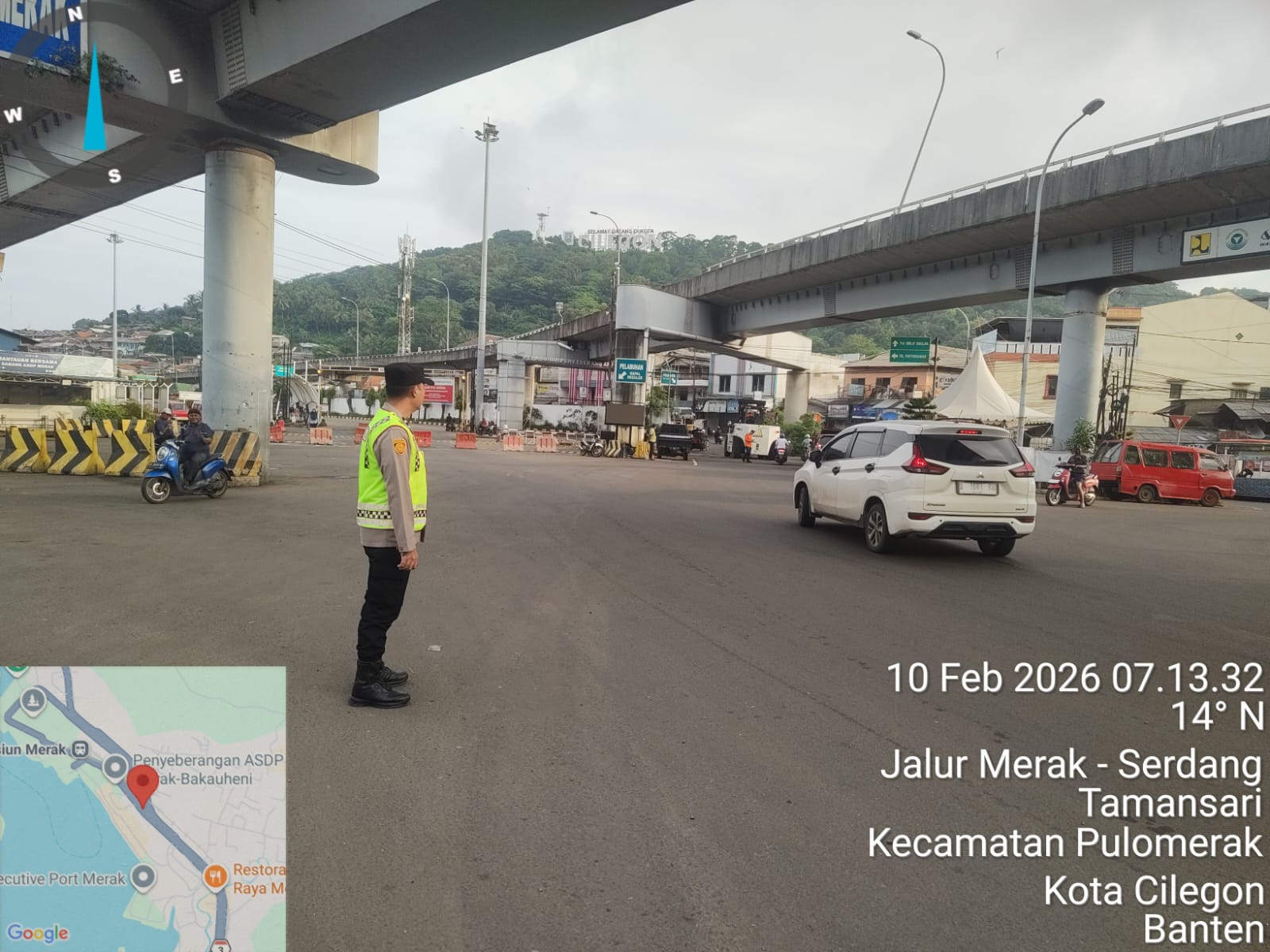 Cilegon - Dalam rangka peningkatan pelayanan prima kepada masyarakat, Kskp Merak Polres Cilegon Polda Banten melaksanakan pengaturan antrian R4 yang akan masuk ke Kapal Ferry di Pelabuhan Merak, Selasa (10/02/2026).