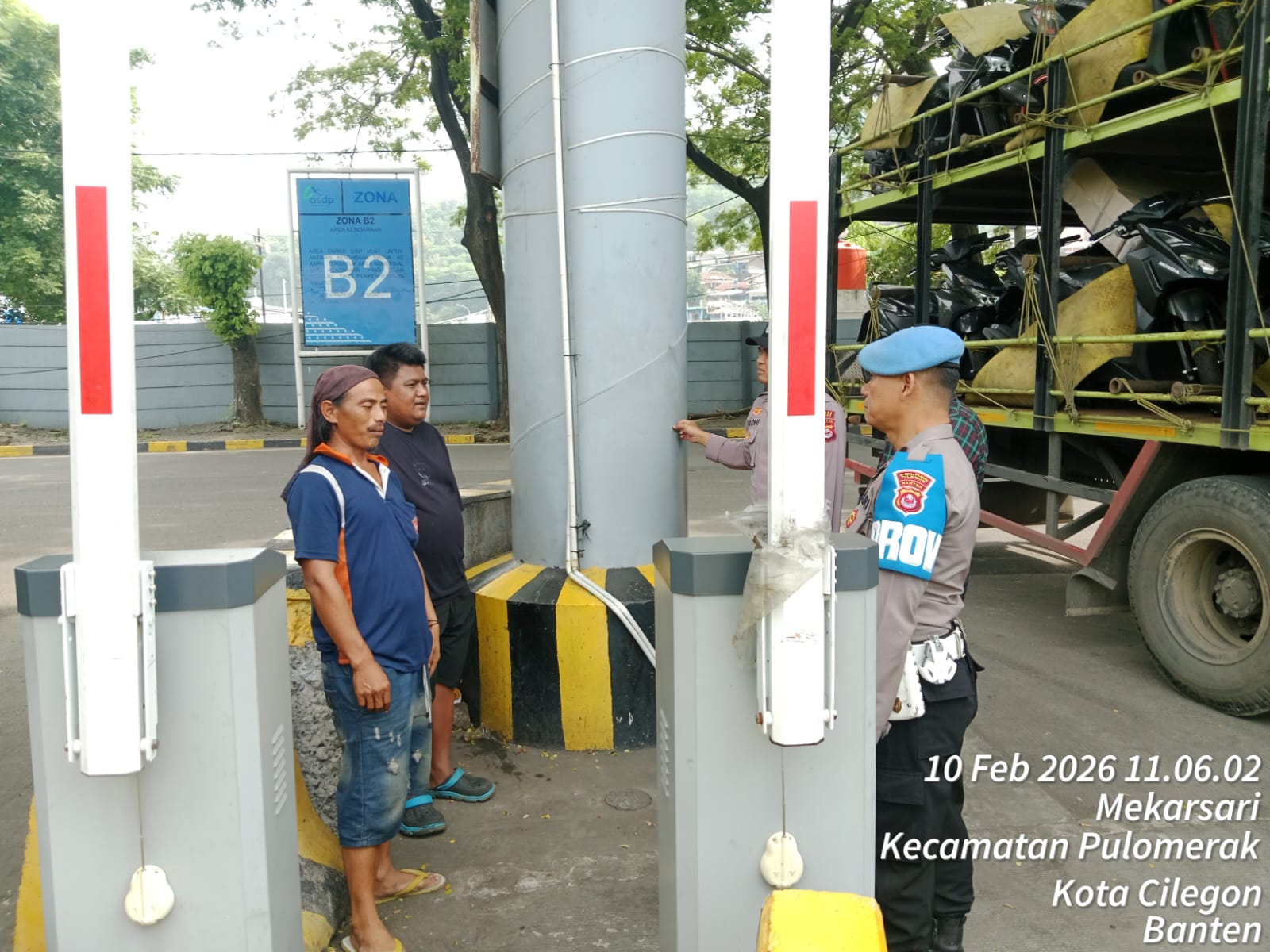 Cilegon - Personel Polsek Kskp Merak Polres Cilegon Polda Banten melaksanakan sambang dan patroli kawasan pelabuhan merak dalam rangka menjaga Harkamtibmas di Kawasan Pelabuhan Merak, Selasa (10/02/2026).