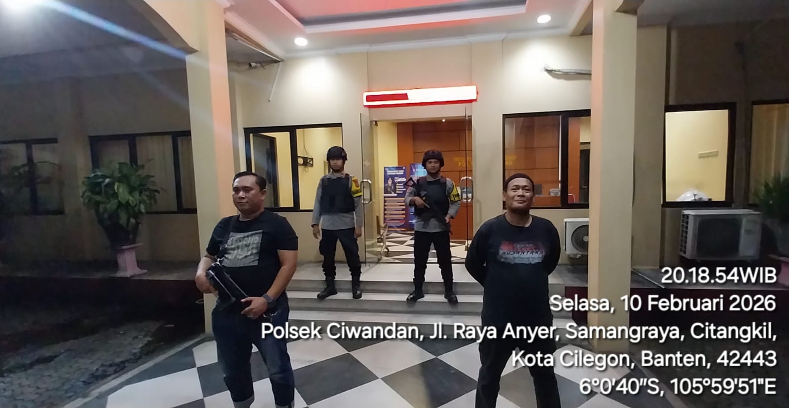 Cilegon – Polres Cilegon Polda Banten Guna mengantisipasi adanya potensi ancaman dan gangguan terhadap keamanan kantor maupun keselamatan personel piket jaga, Personel Polsek Ciwandan Polres Cilegon selalu tingkatkan kesiapsiagaan dan kewaspadaan dengan rutin menggelar kegiatan Sistem Pengamanan Mako (Sispam Mako), Selasa (10/02/2026).