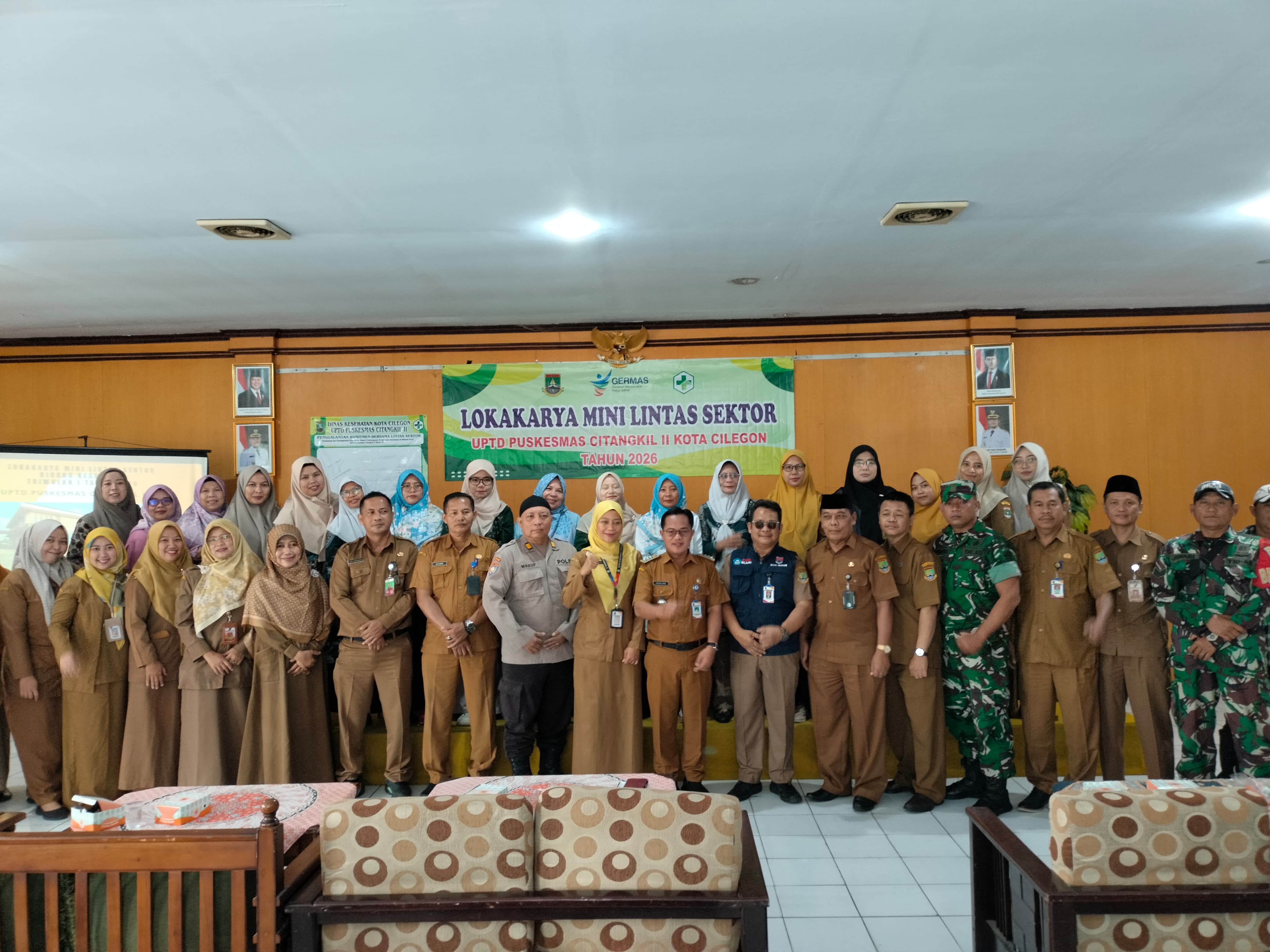 Cilegon - Wakapolsek Ciwandan Polres Cilegon Polda Banten AKP Uup M. Ma'ruf Bersama Personil Bhabinkamtibmas Polsek Ciwandan menghadiri kegiatan Lokakarya mini Lintas Sektor Bidang Kesehatan UPTD Puskesmas Citangkil 2 Tahun 2025 Di Aula Kantor Kecamatan Citangkil,Selasa (10/02/2026).