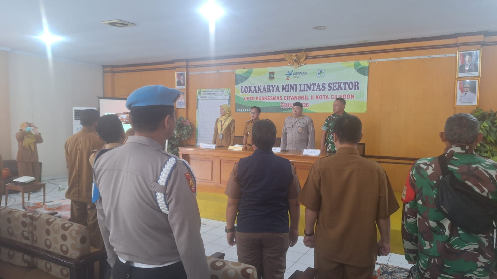 Cilegon - Wakapolsek Ciwandan Polres Cilegon Polda Banten AKP Uup M. Ma'ruf Bersama Personil Bhabinkamtibmas Polsek Ciwandan menghadiri kegiatan Lokakarya mini Lintas Sektor Bidang Kesehatan UPTD Puskesmas Citangkil 2 Tahun 2025 Di Aula Kantor Kecamatan Citangkil,Selasa (10/02/2026).