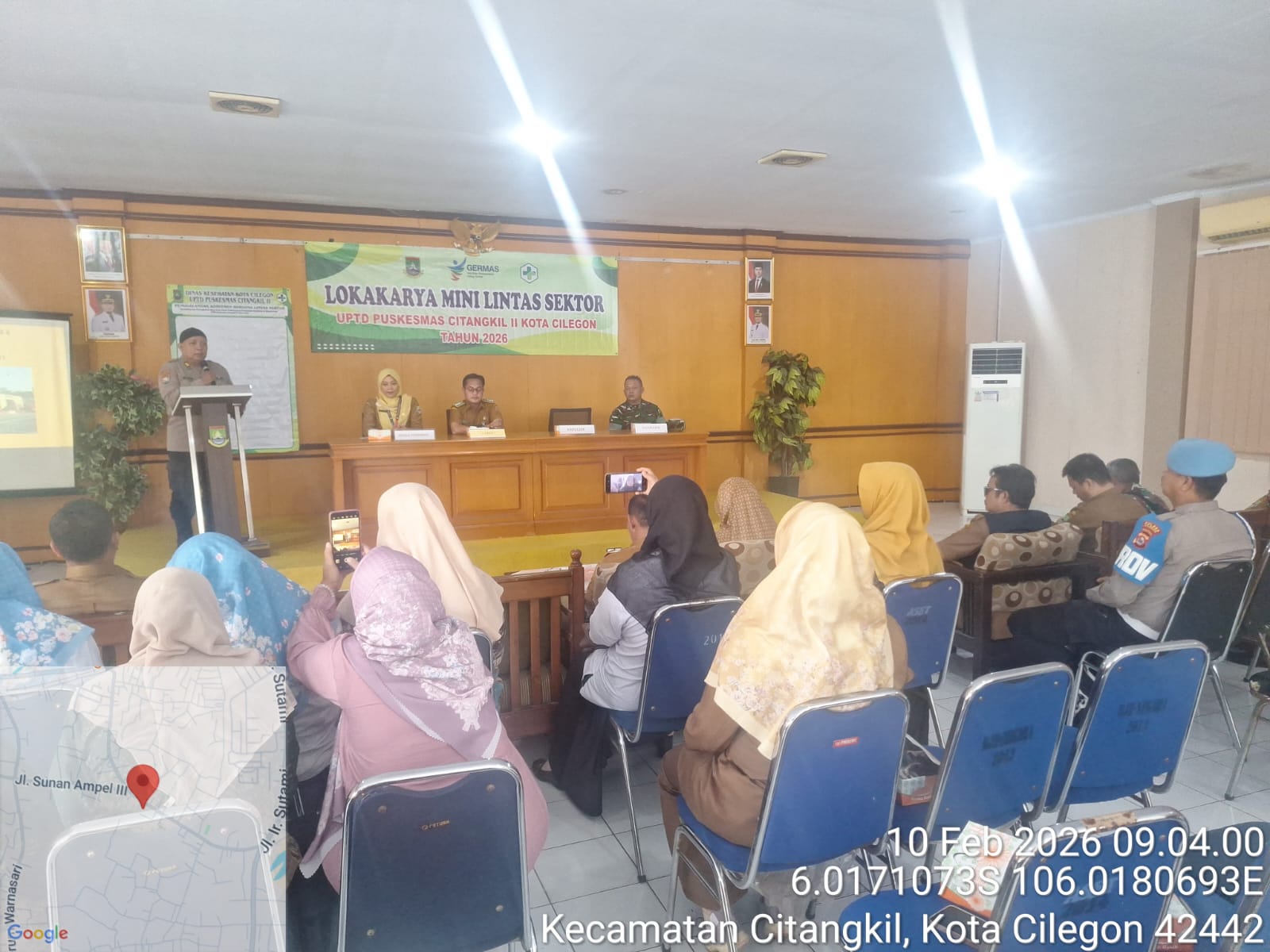 Cilegon - Wakapolsek Ciwandan Polres Cilegon Polda Banten AKP Uup M. Ma'ruf Bersama Personil Bhabinkamtibmas Polsek Ciwandan menghadiri kegiatan Lokakarya mini Lintas Sektor Bidang Kesehatan UPTD Puskesmas Citangkil 2 Tahun 2025 Di Aula Kantor Kecamatan Citangkil,Selasa (10/02/2026).