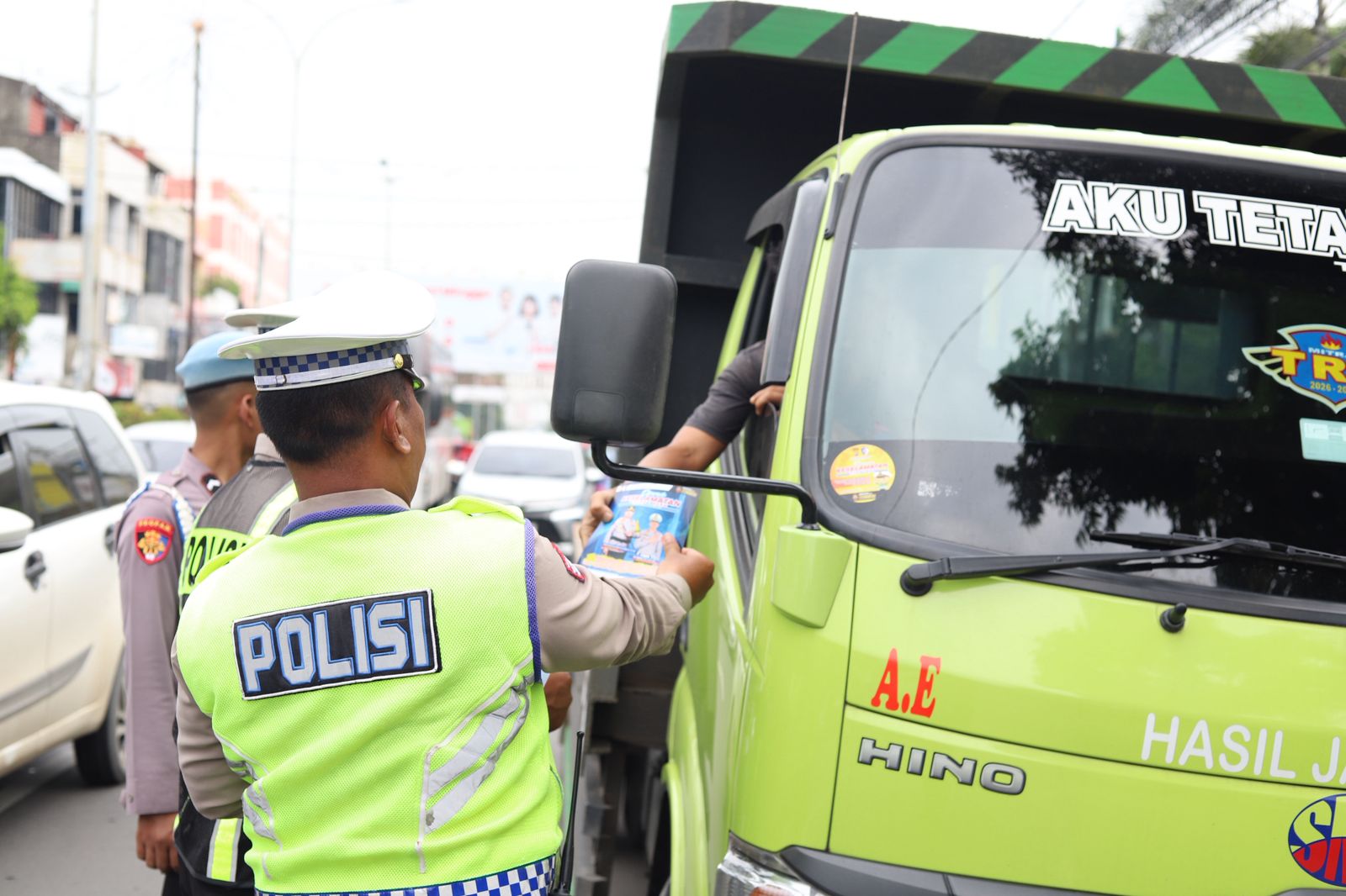 Dalam operasi tersebut, personel Sat Lantas melakukan pemeriksaan kelengkapan kendaraan serta penegakan hukum terhadap pengemudi yang melanggar aturan lalu lintas, khususnya truk bermuatan besar yang melintas di kawasan kota pada jam operasional yang dibatasi.