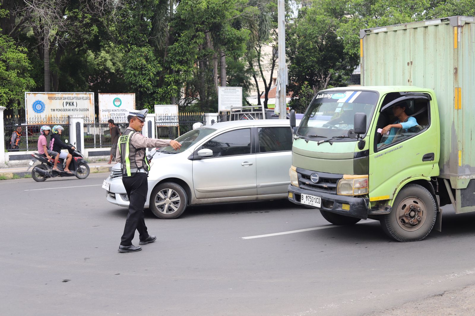 Dalam operasi tersebut, personel Sat Lantas melakukan pemeriksaan kelengkapan kendaraan serta penegakan hukum terhadap pengemudi yang melanggar aturan lalu lintas, khususnya truk bermuatan besar yang melintas di kawasan kota pada jam operasional yang dibatasi.