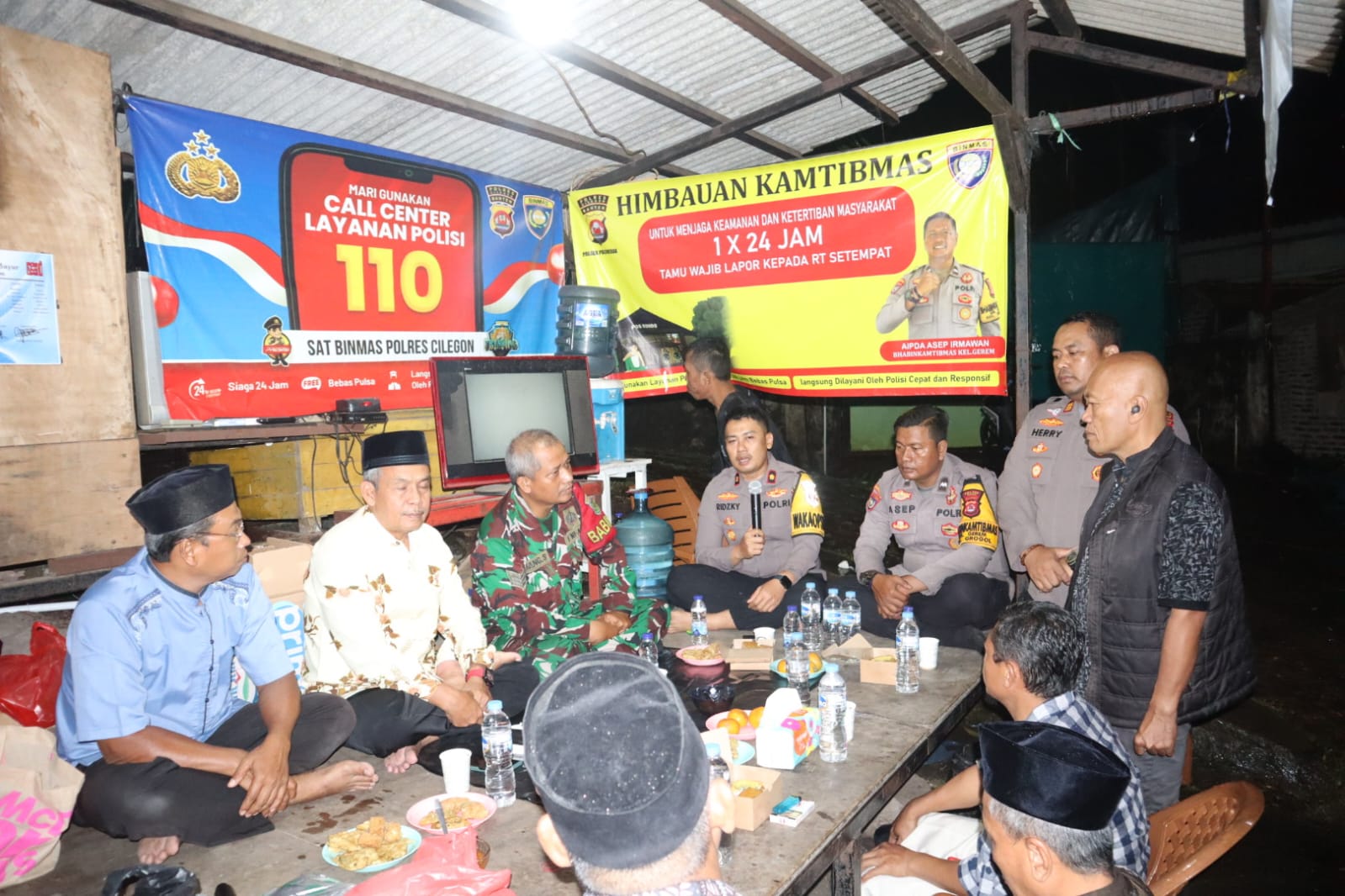Kegiatan yang berlangsung mulai pukul 21.00 WIB tersebut dihadiri Wakapolres Cilegon KOMPOL M. Ridzky Salatun, S.I.K., didampingi Kasat Binmas Polres Cilegon IPTU Muhyidin, S.H., Kasi Propam Polres Cilegon AKP Heri Susanto, S.H., M.M., serta jajaran personel Polres dan Polsek. Turut hadir Plt Lurah Gerem Himatul Qismat, S.Pdi, unsur TNI, para Ketua RT/RW, serta perwakilan warga setempat.