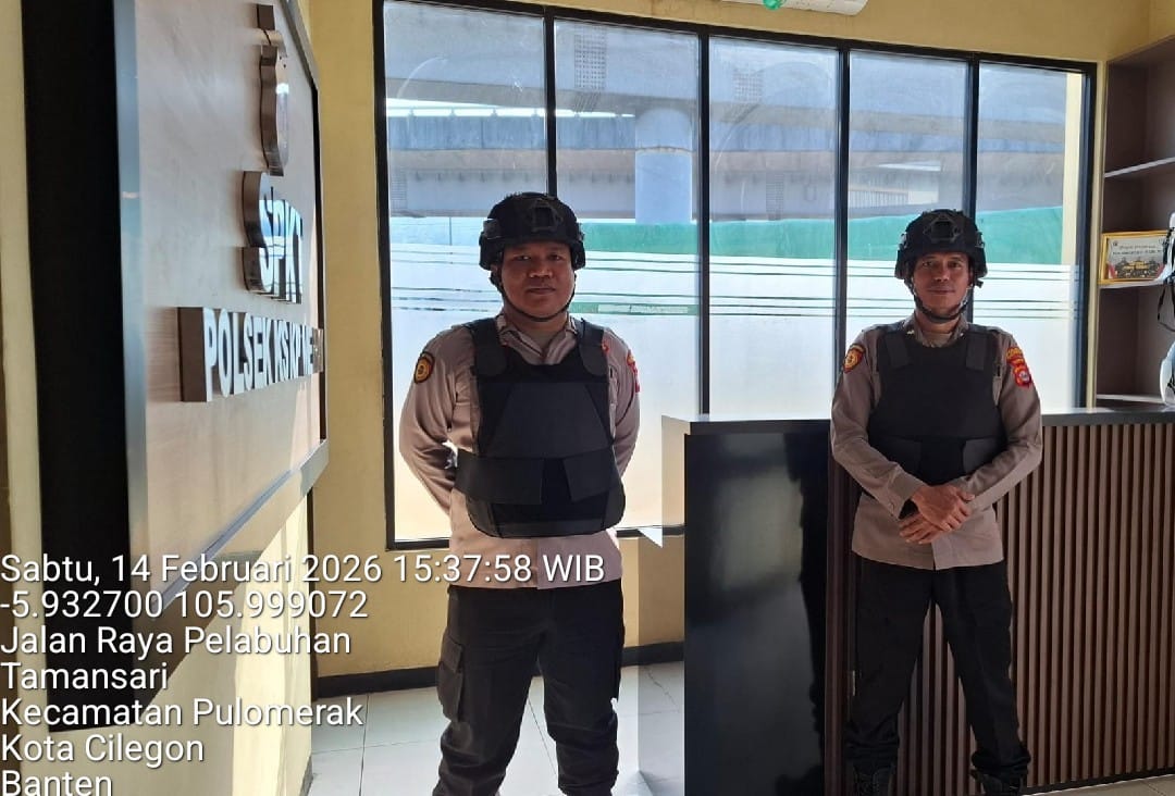 Cilegon - Personel piket jaga Polsek Kskp Merak Polres Cilgon Polda Banten melaksanakan siaga 1 Polsek pelaksanaan Sispam Mako oleh piket siaga dipimpin oleh Kspk Polsek Kskpy Merak Polres Cilegon Polda Banten, Sabtu (14/02/2026).