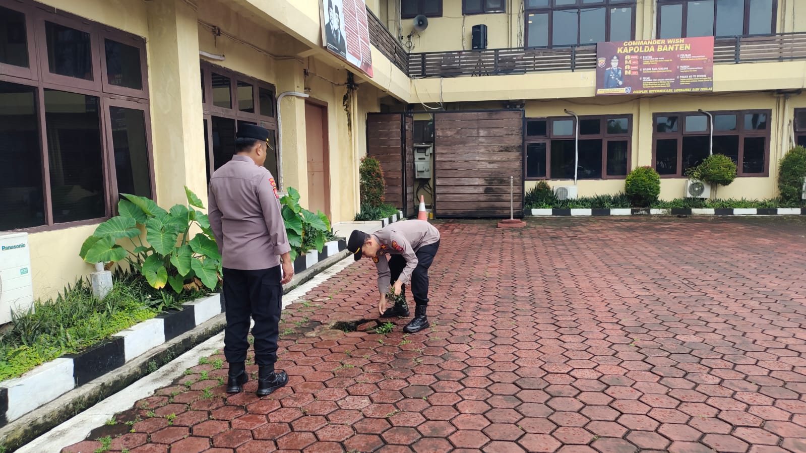 Cilegon  - Personil Polres Cilegon Polda Banten melaksanakan kegiatan program Asri (aman,sehat,Resik dan indah)  di lingkungan halaman Polres Cilegon