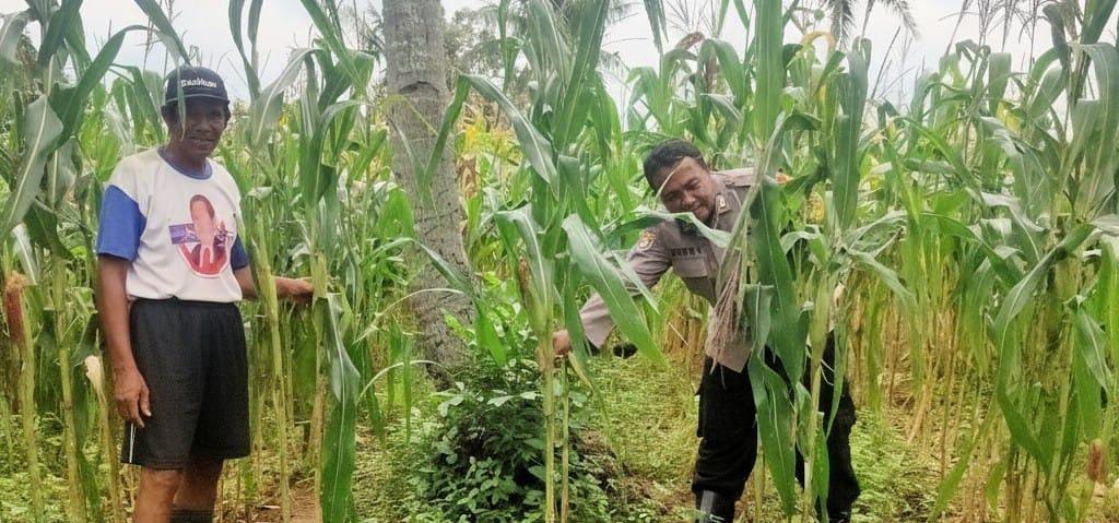 Dalam kegiatan monitoring ini, Bhabinkamtibmas meninjau langsung kondisi lahan jagung.