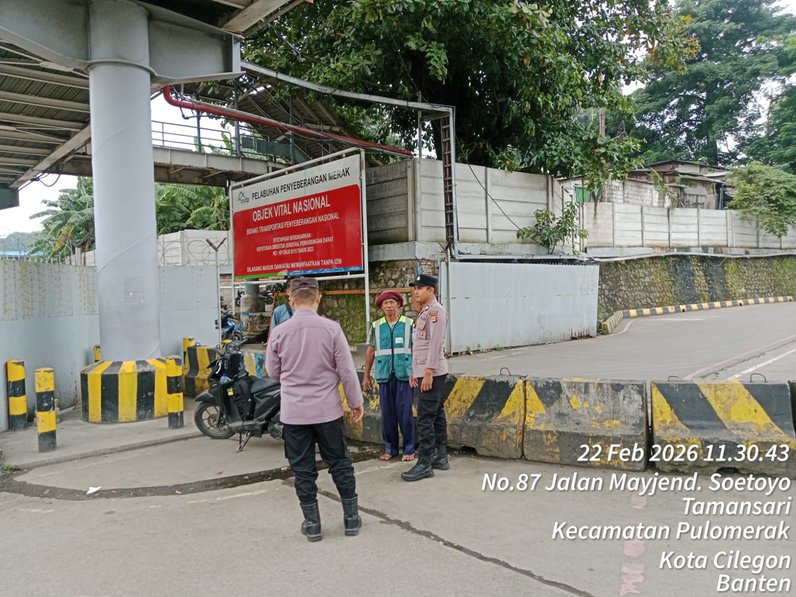 Cilegon - Personel Polsek Kskp Merak Polres Cilegon Polda Banten melaksanakan sambang dan patroli kawasan pelabuhan merak dalam rangka menjaga Harkamtibmas di Kawasan Pelabuhan Merak, Minggu (22/02/2026).