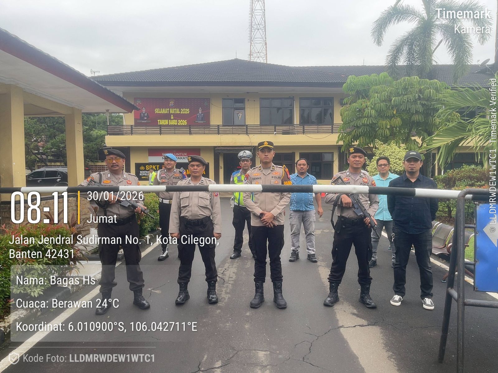 Kapolres Cilegon Polda Banten AKBP Dr.Martua Raja Taripar Laut Silitonga melalui Kasatreskrim Polres Cilegon AKP Yoga Tama mengatakan, “kegiatan personel satreskrim polres cilegon melakukan piket di penjagaan pintu masuk Mako Polres Cilegon mengantisipasi adanya kejahatan yang menggangu kenyamanan dan keamanan mako Polres Cilegon dalam melakukan pelayanan kepada masyarakat kota Cilegon".