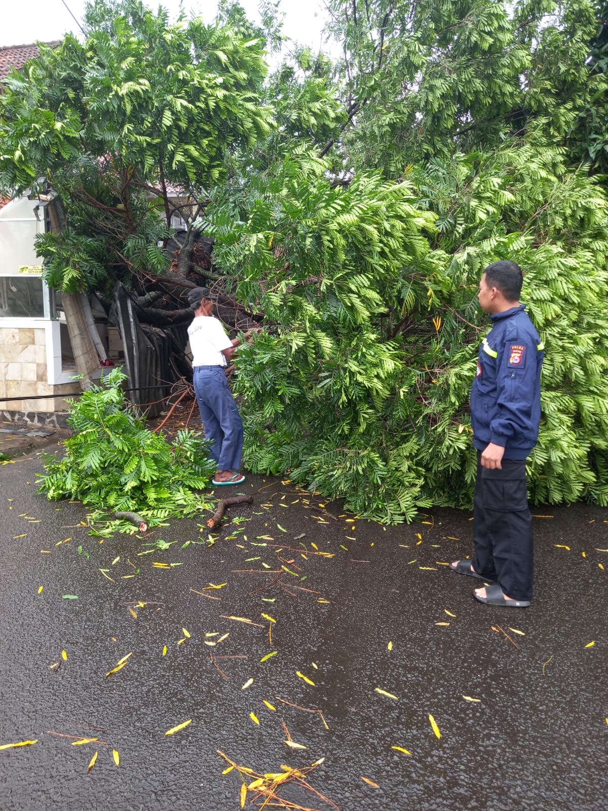 “Kami bersama warga dan instansi terkait segera melakukan penanganan pohon tumbang agar tidak mengganggu aktivitas masyarakat serta untuk menjaga keselamatan pengguna jalan,” ujar IPTU Sukanda.