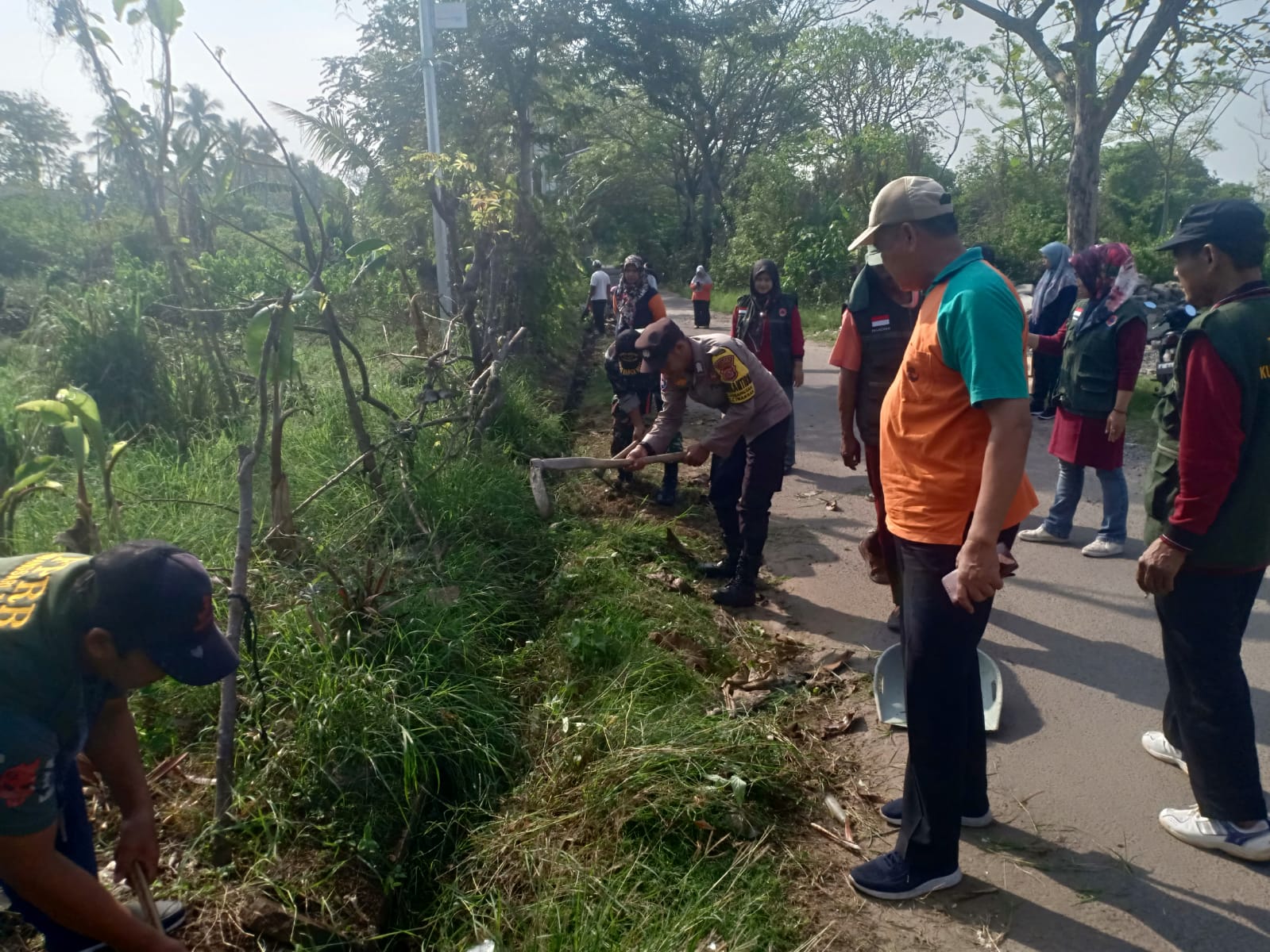 Cilegon - Bhabinkamtibmas Kelurahan Warnasari Polsek Ciwandan Polres Cilegon Polda Banten AIPDA Asep Karyudin bersama warga melaksanakan Gotong Royong Kerja Bhakti bersih-bersih Lingkungan Kelurahan Kubangsari, Minggu (15/03/2026).