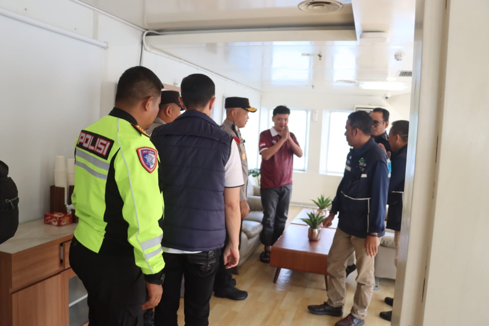Ketua Komisi III DPR RI tiba di lobby Sosoro Mall sekitar pukul 07.30 WIB dan langsung disambut oleh Kapolda Banten, Direktur Utama PT ASDP Indonesia Ferry Heru Widodo, Wakapolda Banten Brigjen Pol Hendra Wirawan, serta sejumlah pejabat utama Polda Banten dan jajaran Polres Cilegon.