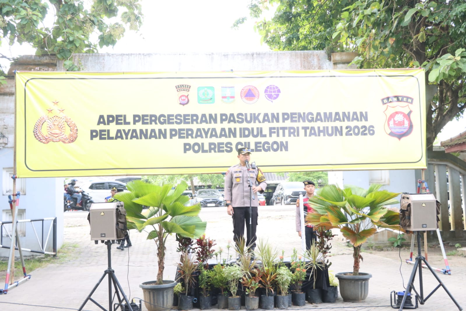Polres Cilegon Polda Banten Gelar Apel Pergeseran Pasukan Pengamanan Wisata Operasi Ketupat Maung 2026.