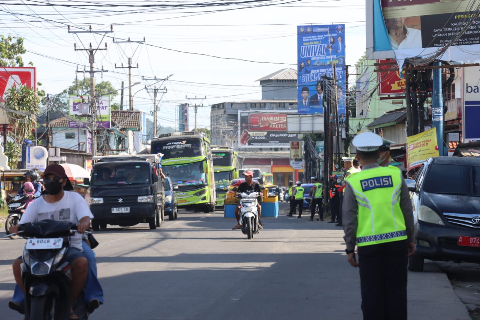 upaya mengurai kepadatan,  Polres Cilegon memberlakukan sistem satu arah (one way) di jalur wisata, khususnya pada ruas Cilegon menuju Anyer hingga Cinangka, baik menuju lokasi wisata maupun sebaliknya. Penerapan sistem ini dilaksanakan pada pukul 09.00 WIB hingga 11.00 WIB dan bersifat situasional sesuai dengan diskresi kepolisian. Selain itu, dilakukan pula penyekatan kendaraan serta pengalihan arus ke jalur alternatif melalui Mancak guna mengurangi kepadatan di titik-titik rawan.