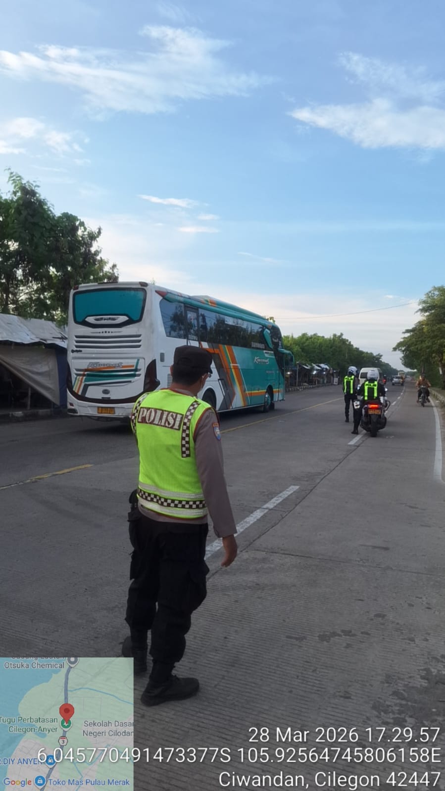 Cilegon - Polsek Ciwandan melaksanakan Kegiatan Rutin Yang Ditingkatkan (KRYD) dan monitoring jalur wisata di depan Pos Lantas JLS Ciwandan. Kegiatan ini bertujuan untuk membantu kelancaran arus lalu lintas dan memberikan pelayanan kepada masyarakat guna menciptakan keamanan dan ketertiban lalu lintas, Sabtu (28/03/2026).