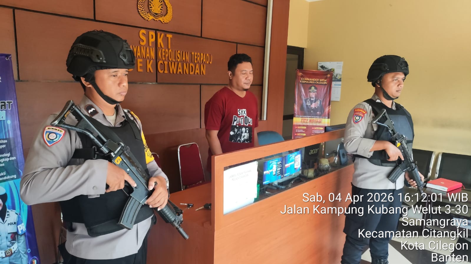 Kapolres Cilegon Polda Banten AKBP Dr. Martua Raja Taripar Laut Silitonga yang diwakili oleh Kapolsek Ciwandan Polres Cilegon Polda Banten KOMPOL Achri Dwi Yunito menerangkan bahwa sebagai langkah dalam mencegah timbulnya potensi gangguan dari luar terhadap keamanan kantor maupun keselamatan personel piket jaga, selalu memerintahkan kepada personel yang melaksanakan piket jaga Mako agar sewaktu-waktu menggelar kegiatan Sispam Mako.