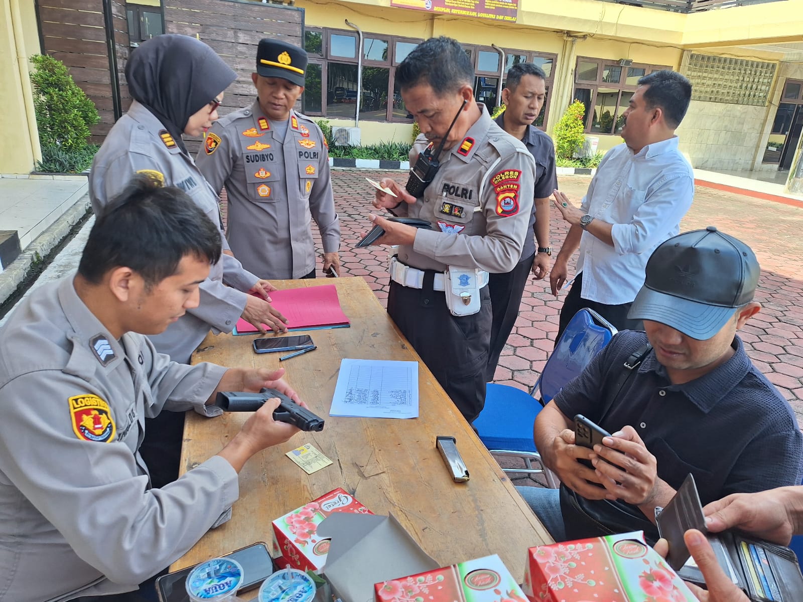 Cilegon,Polres Cilegon Polda Banten., Kabaglog Polres Cilegon AKP Sudibyo Wardoyo, S.H.,M.M beserta staf Baglog Melaksanakan pengecekan Barang Inventaris Anggota berupa HT dan Senpi.