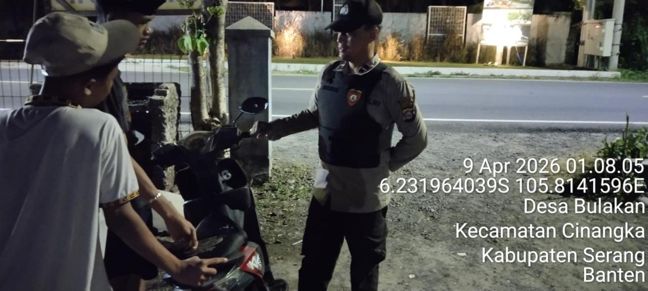 *Cilegon* – Dalam Rangka Pencegahan Kejahatan Jalanan dan Memelihara situasi keamanan dan menjaga serta memberikan rasa aman dan nyaman di masyarakat,Salah satu upaya untuk mewujudkan hal tersebut sebagaimana yang dilakukan oleh Personil Polsek Cinangka Polres Cilegon Polda Banten melaksanakan giat patroli blue light malam hari hingga menjelang pagi, Kamis (09/04/2026).