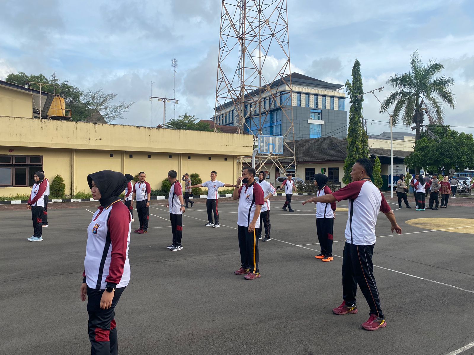 Jaga Kesehatan, Personel SIkeu Polres Cilegon Rutin Gelar Olahraga Bersama