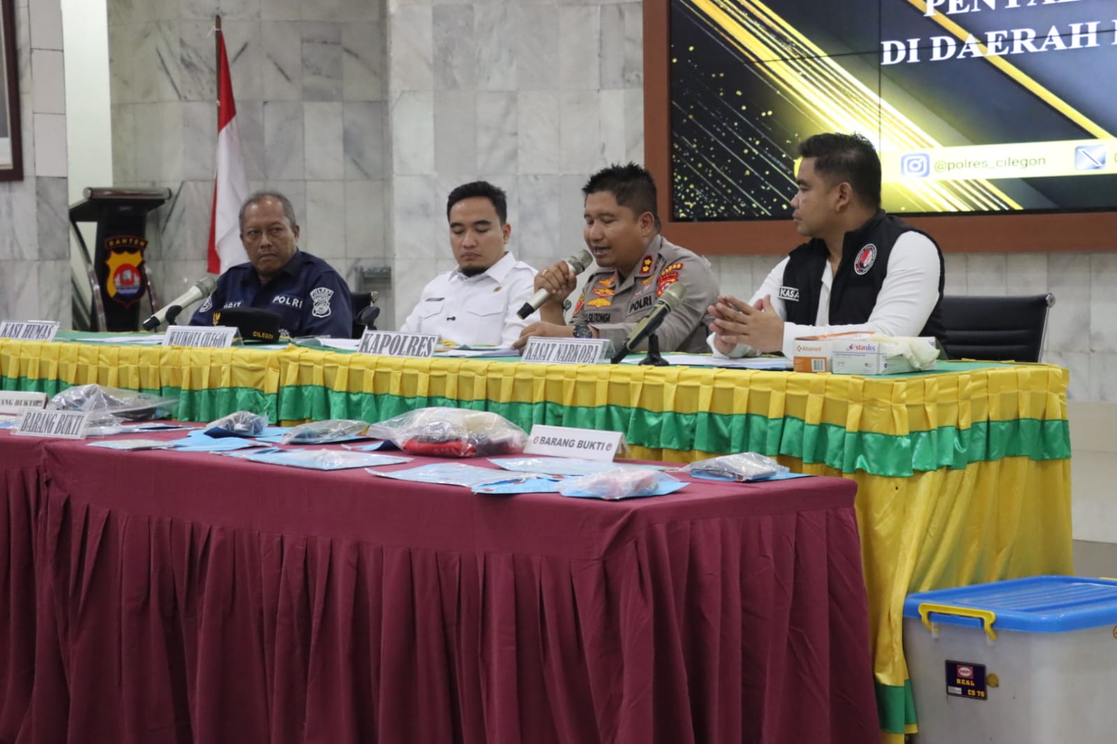 Kapolres Cilegon AKBP Dr. Martua Raja Taripar Laut Silitonga menyampaikan bahwa dari total tersangka, 9 orang berperan sebagai pengedar dan 3 orang sebagai perantara dalam transaksi narkotika.