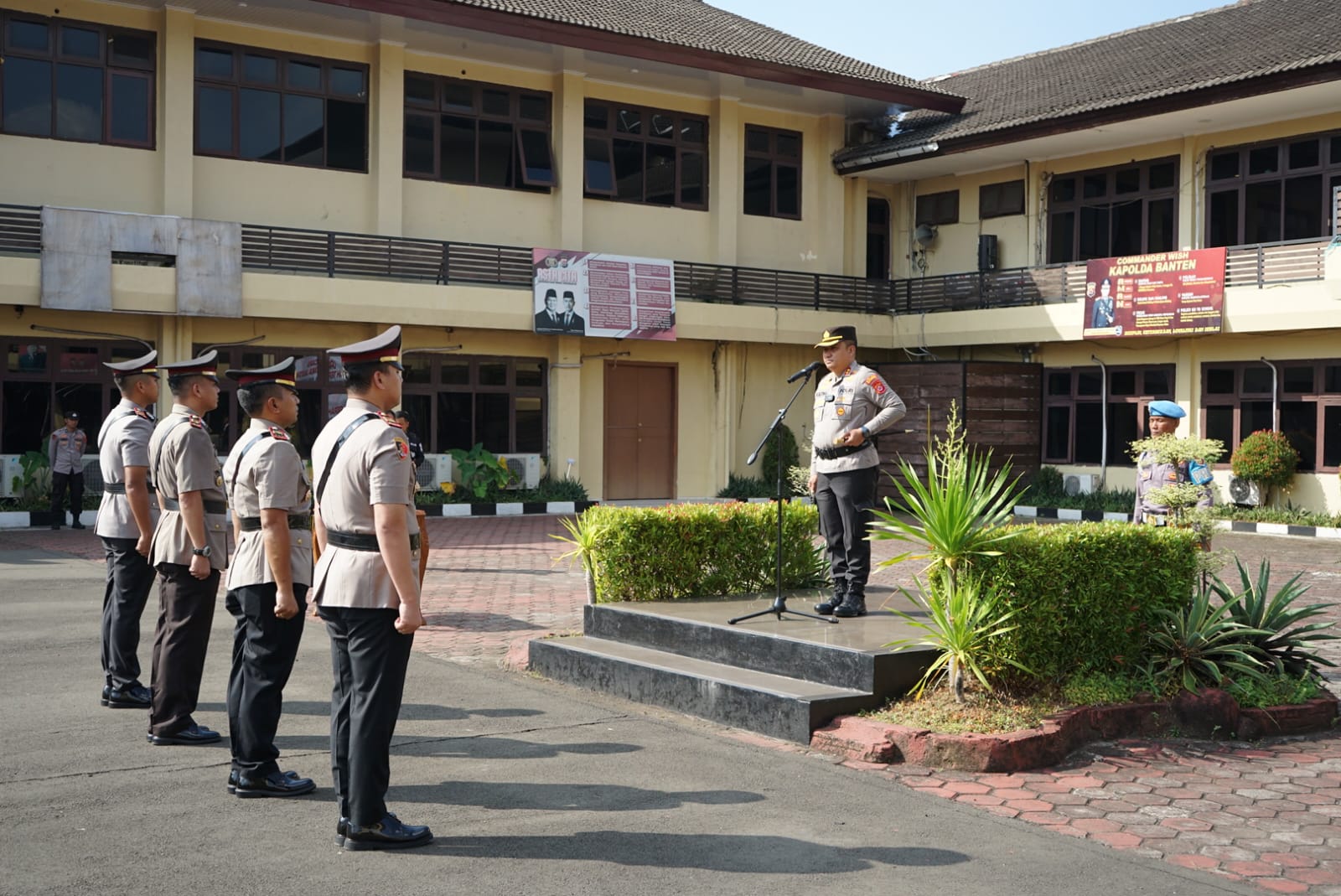 Cilegon - Kapolres Cilegon AKBP Dr. Martua Raja Taripar Laut Silitonga S.H S.IK M.S.I, memimpin langsung upacara pengangkatan dan serah terima jabatan (sertijab) tiga kapolsek di jajaran Polres Cilegon Polda Banten, kapolsek Kp Banten,Kapolsek Bojonegara  dan Kapolsek Puloampel, selasa ,14/4/26