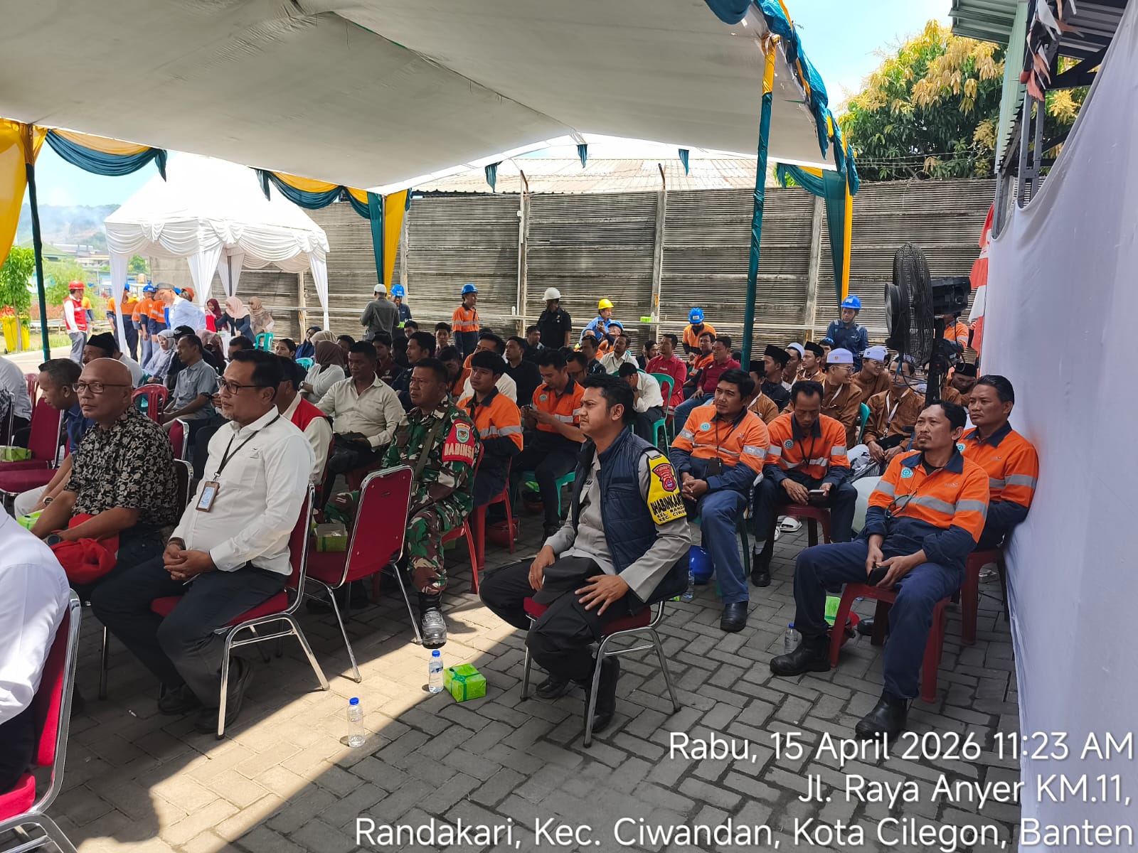Hadir pula Kasi Trantib Kec. Ciwandan Hebi beserta staf, Lurah Randakari dan Lurah Kepuh, perwakilan tokoh masyarakat Kec. Ciwandan, perwakilan RT dan RW Kel. Randakari dan Kel. Kepuh, serta karyawan PT JMR.